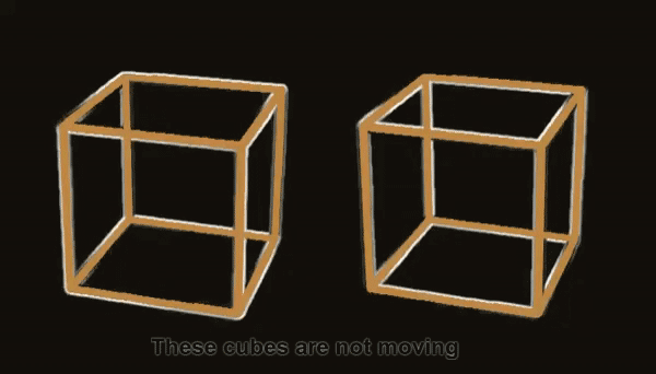 Bởi vì bộ não con người của chúng ta ghi nhận sự thay đổi ánh sáng (như khối lập phương nhấp nháy từ sáng sang tối) dưới dạng chuyển động, nên có vẻ như các khối đang chuyển động trong khi thực tế chúng hoàn toàn tĩnh.